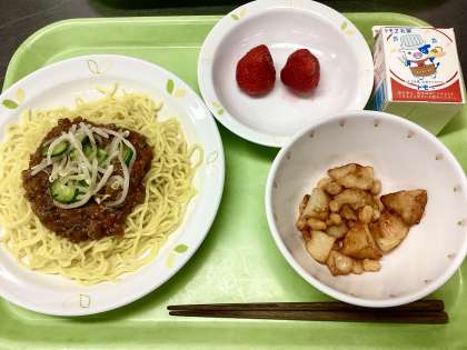 前回まで、麺よりも肉味噌の残菜の方が多かったので、今回はタレ全体の量を減らしています。これでちょうど良くなればいいのですが…。しかし、今日は量以外で反省点が1つ。いつもお肉屋さんに「豚ひき肉と一緒に豚レバーも合わせてミンチ」とお願いしているのですが、今日はどうやらレバーがちょっと多かったようです。食べてみると、レバーの風味に気がつく先生も何名かいました。鉄分はとても取りづらい栄養なので、ついレバーを多くしてしまいがちですが、これは次回の注意ポイントになりました。