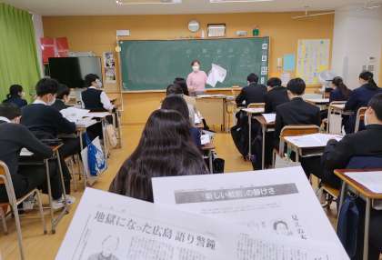 テスト返却の後、新聞記事と詩の紹介を行いました。