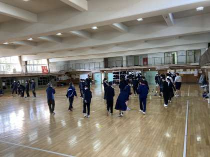 5時間目にI組と生徒会、先生方でボッチャ交流会を行っております。