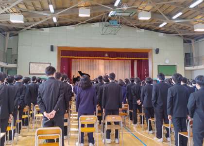 3年生が卒業し、これから1年間校歌を担当する指揮者、伴奏者が紹介されました。