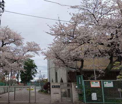 正門の桜、昨日までの雨にも負けず頑張っています。