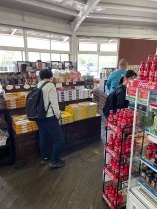 お土産も移動教室の大事な取り組みの一つです。実地踏査最後の見学地は「ドライブインもちや」です。限られたお小遣いの中で何を誰にと悩むことも、よい思い出になります。先生たちも嬉しそうに悩みながらお土産購入しています。