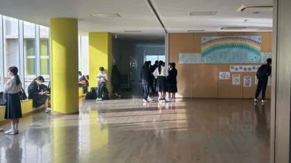今日は2つの部活が1年生に発表会をしてくれました。準備中ですが、たくさん集まっています。