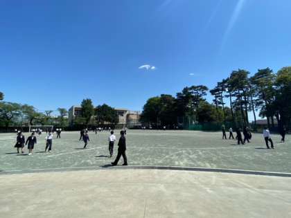 多くの生徒が校庭で気持ち良さそうに遊んでいます。