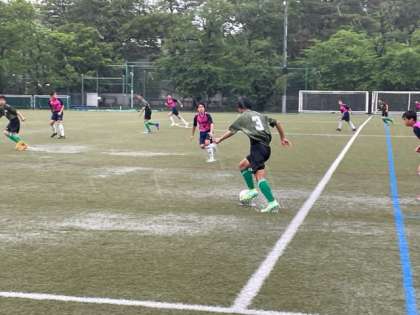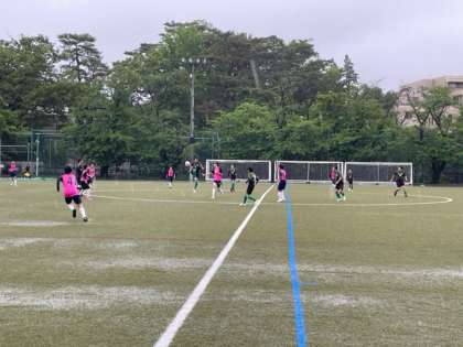 初戦の相手校は松沢中学校。人工芝のピッチですが雨も激しく戦術的に難しい展開となりました。