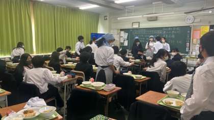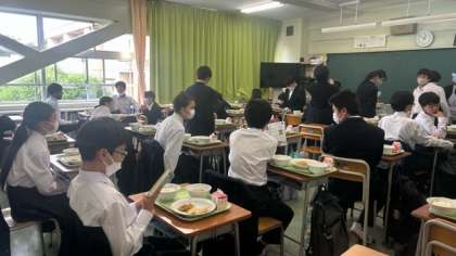 給食はもうしばらくこれまでのスタイルです。1年生の様子です。1年生は小4から班で食べていないのですね。