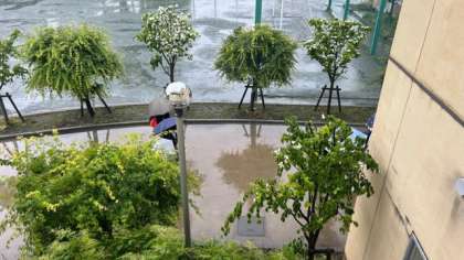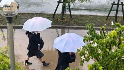 雨の中、登校
