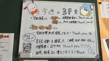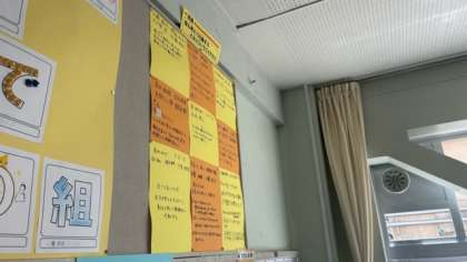教室内の掲示物、なかなかいいですね。学活、道徳科です。