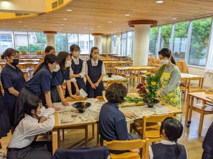 日本文化部第一回目のいけばなです。松花古流いけばなという流派です。