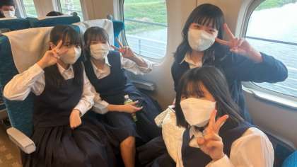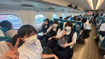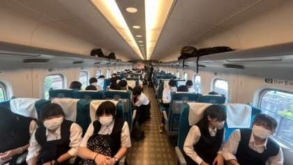 新幹線の車内で