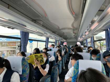 もうすぐ法隆寺に到着します。新大阪からの道中もあべのハルカスや古墳が見えたり、ちょっと観光ができました。