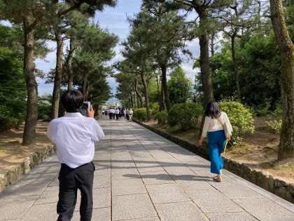 薬師寺を後にして唐招提寺へ向かいます。水分補給もしっかりしていますね。