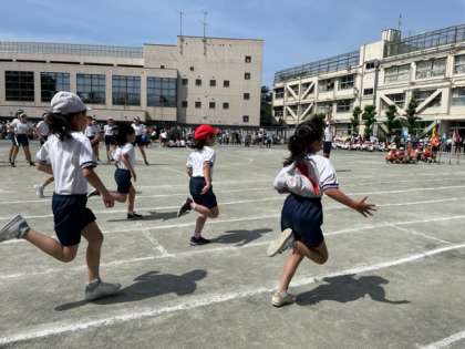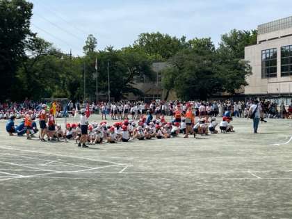 砧の学び舎「明正小学校」の運動会です。晴天の中、上級生が応援団となり大きな声で運動会を盛り上げています!