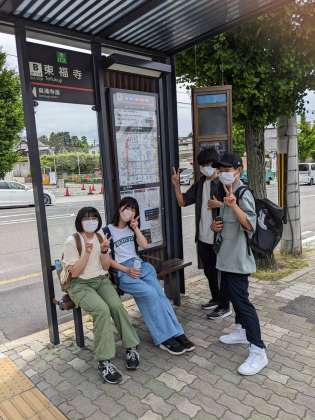 東福寺駅からバスで昼食場所の梅山堂へ向かいます。
