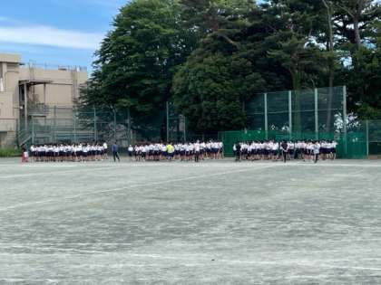 全体練習の最後は入退場練習です。応援席の位置などを全体で確認しました。