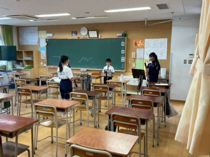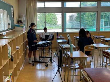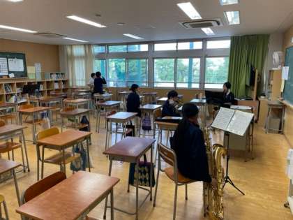 放課後の教室では運動会に向けて吹奏楽部が練習中です。