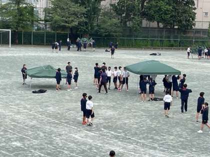 校庭では明日の予行の準備が進められています。