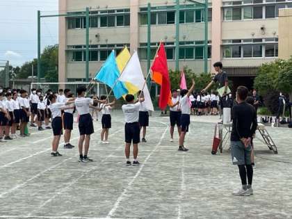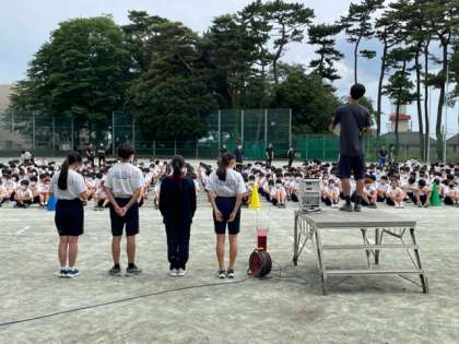 運動会前最後の全体練習です。入退場も含めて全体の流れの再確認をしています。