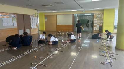 クラスカラーのテープで調整です。