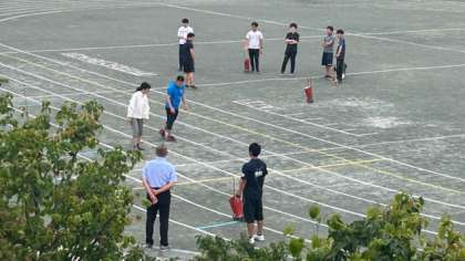 ライン引きとロープ張り