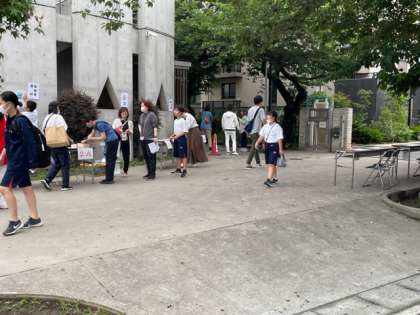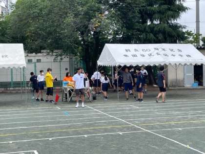 生徒たちとPTAの皆さんが協力して会場準備をしています。