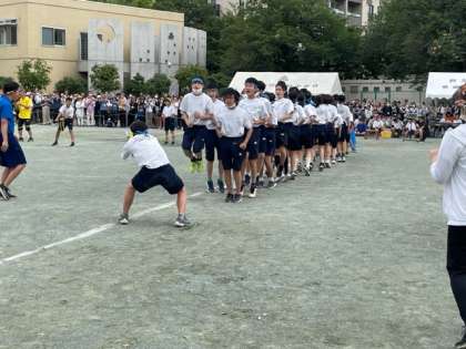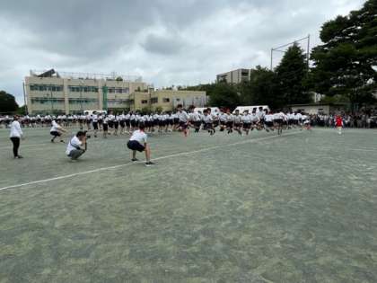 2年生大縄跳び、大きな掛け声と共に競技が始まりました。担任の先生も一緒に飛んでいるようです。