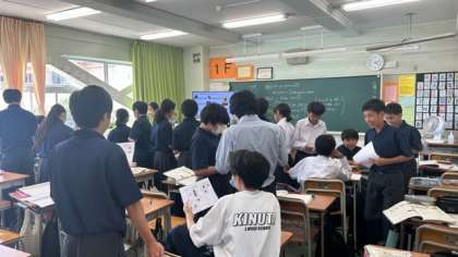 英語と数学は話し合い活動、社会の実習生もがんばっています。