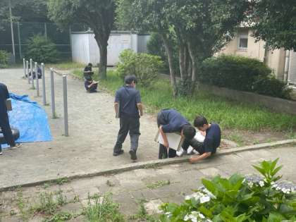 1年生美術では校内で「本当に面白いものを見つける」授業です。スケッチブックに描写しています。