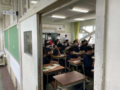 本日5校時に「学び舎合同研修会」を開催しました。学び舎の小学校の先生と久しぶりの再会で生徒たちも嬉しそうです。
