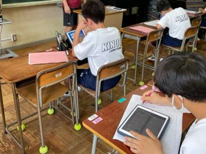 i組は先週行ったTボール大会を振り返り作文を書いています。iPadで文章を構成したり漢字を検索しながら、その時の自分の気持ちをしっかりと振り返り文にまとめています。