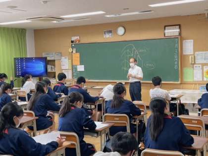 3年生社会の期末考査が返されています。1問ずつ解説を聞き反省や課題を見つけ次へのモチベーションを高めています。
