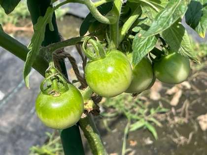 農業部が管理している空中農園では、きゅうり、ナス、トマトが実りつつあります。