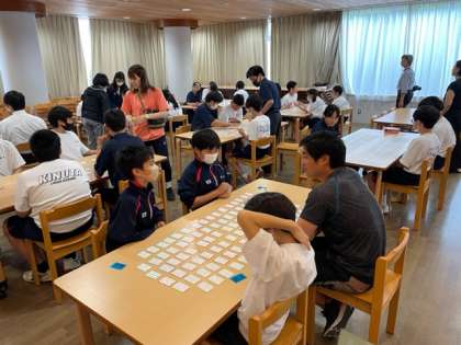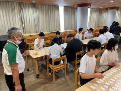 卒業生を囲む会の二部は、先輩方と交流を深める「百人一首大会」が行われています。みんな嬉しそうです!