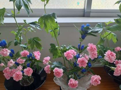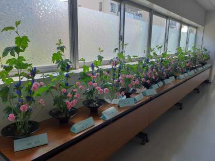 昨日の日本文化部は、華道のお稽古でした。毎月一回ほど、松花古流いけ花の先生に来ていただいています。昨日は、りんどう、スプレーカーネーション、きいちごで斜態型本勝手の作品を作りました。