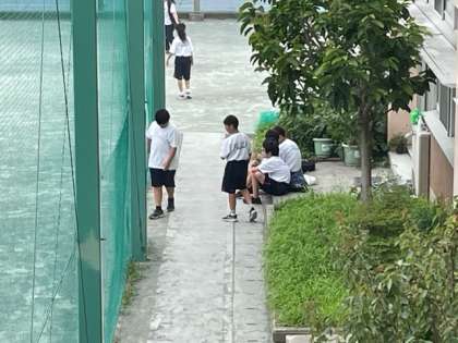 今日はWBGT指数も昨日までより低くボール貸出ありの昼休みです。それぞれのリラックスした時を過ごしています。