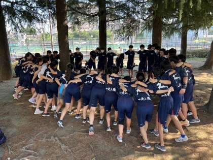 集合時のミーティングでは、副部長から士気の上がる言葉をもらい、全員で円陣を組んでスタートしました。