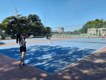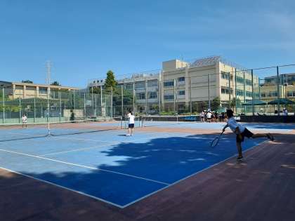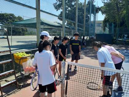 今日のテニス部は桜ヶ丘中学校との練習試合です。先攻後攻とコートサイドを決めてから試合開始です。