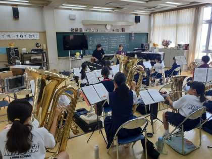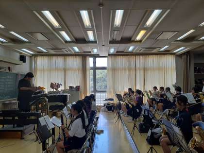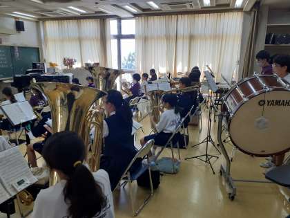 吹奏楽部はパート練習のあと、音楽室に集まって全体練習をしています。