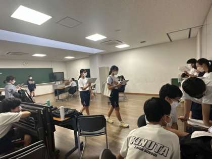 役者を見守りつつサイドで台本の調整も行なっています。劇の完成が今から楽しみです。