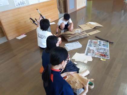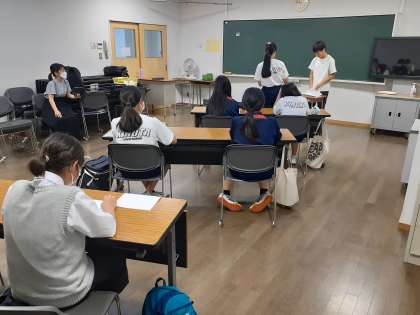 演劇部では学芸発表会に向けての練習をしています。多目的ホールでは小道具制作をしています。