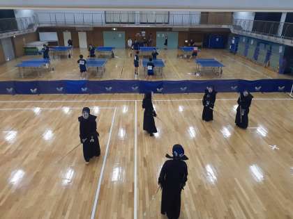 格技室では剣道部と卓球部が練習をしています。