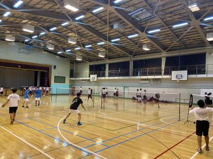 午後は体育館でバドミントン部が活動しています。