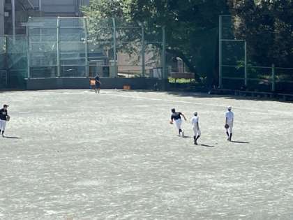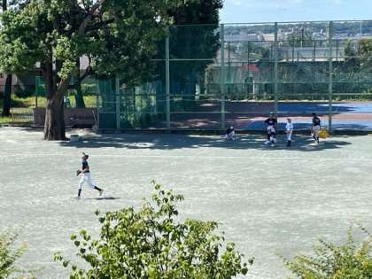 校庭では日陰で休憩を取りながら内野と外野に分かれ練習しています。