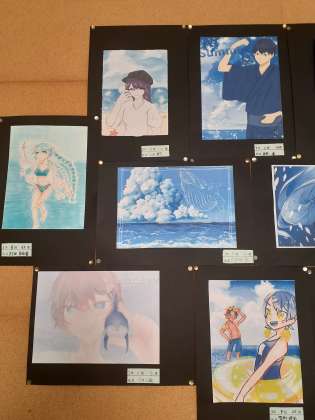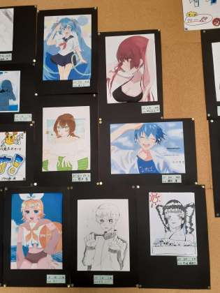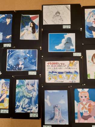 イラスト部では海をテーマに多目的ホール横で展示をしています。