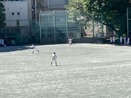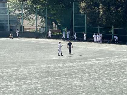 校庭では野球部が練習試合を行なっています。対戦相手は調布第五中学校です。