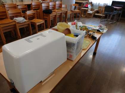 演劇部では、色々な道具を借りて大道具や小道具の制作を行いました。