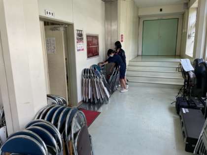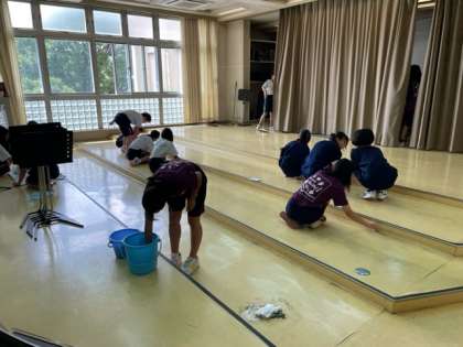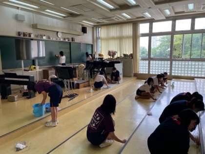 一夜明けた吹奏楽部は、コンクールを一つの節目としてお世話になった音楽室に感謝の気持ちを込めて大掃除しています。