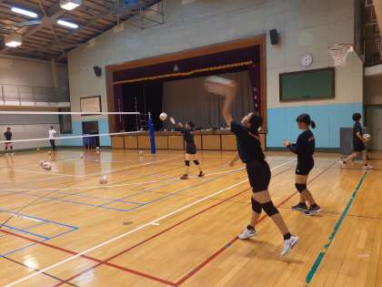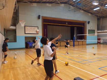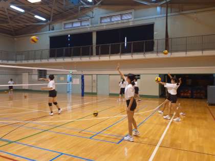 8月22日午後、体育館ではバレーボール部の練習が行われています。サーブ練習をしています。