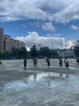 突然の雷雨で一時退避もありましたが、サッカー部は千歳中学校で練習試合です。