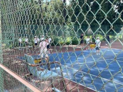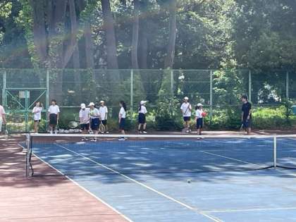 テニス部は先生と一緒にフォームの確認をして、今週の土曜日から始まる新人戦に向けて練習しています。